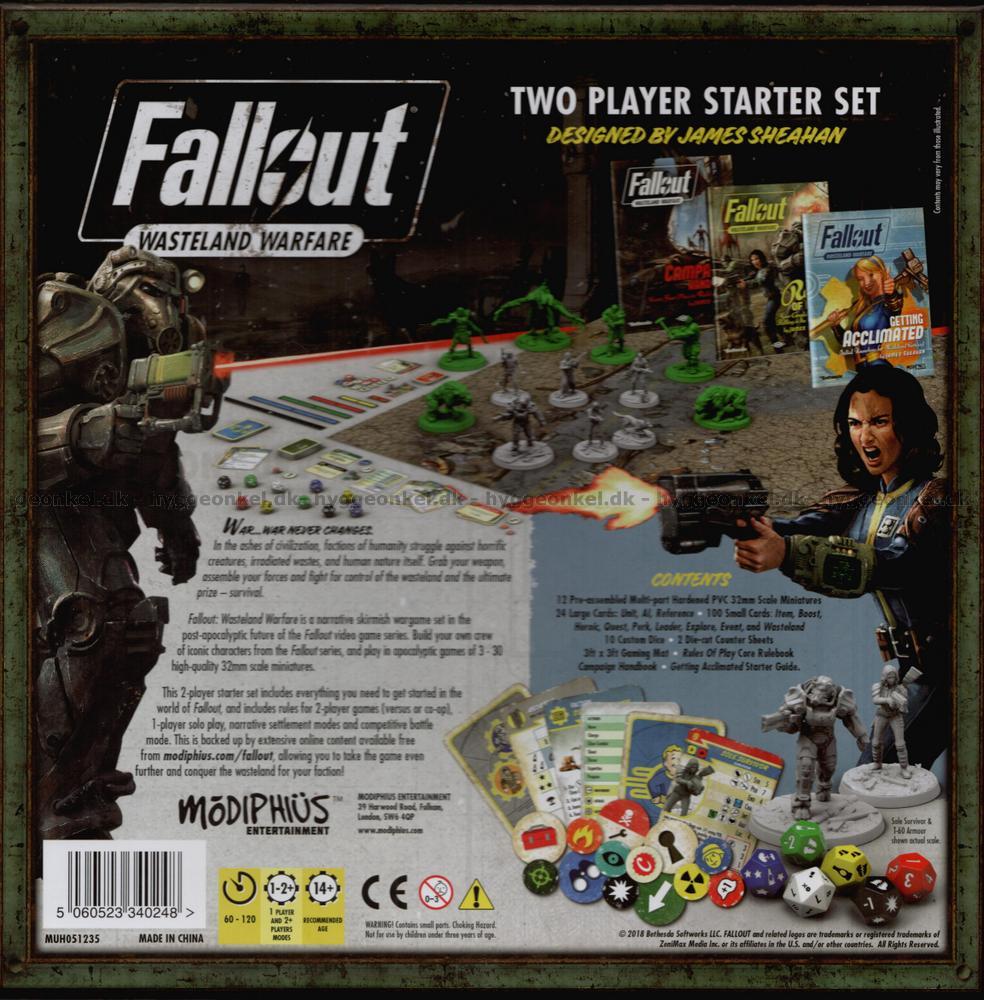 Fallout: Wasteland Warfare startset för två spelare innehåller 32 mm höga figurer i hög kvalitet. Figurerna är redan monterade. Du kan uppgradera spelet med ännu bättre figurer.