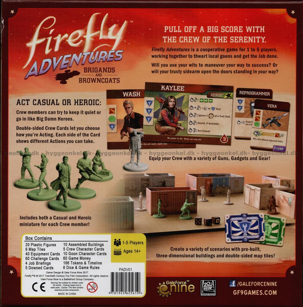 Firefly Adventures: Brigands and Browncoats är ett nytt samarbetsspel för 1-5 spelare. Spela som besättningen på Serenity och använd alla de möjligheter det ger (och en mängd Thrilling Heroics!) för att säkra att ni klarar uppdraget och får betalt!