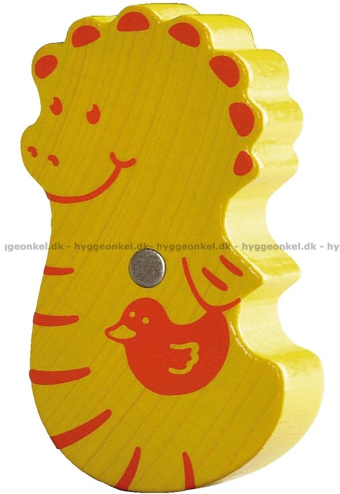 Stora träbrickor, metspö, tärning med färger och bitar i kartong.