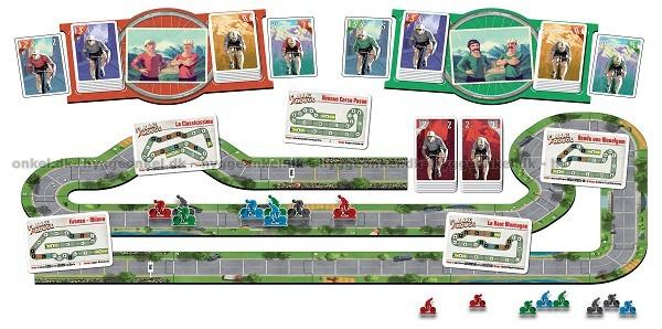 1 bana, 4 individuella spelarbräden, 8 cyklistfigurer, 21 etappbrickor och en hög med kort.