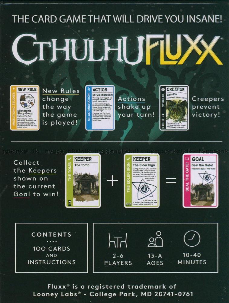 Utforska mörka mysterier och fruktansvärda historier om det okända medan du kämpar mot sinnessjuka och sataniska kulter i Cthulhu Fluxx!