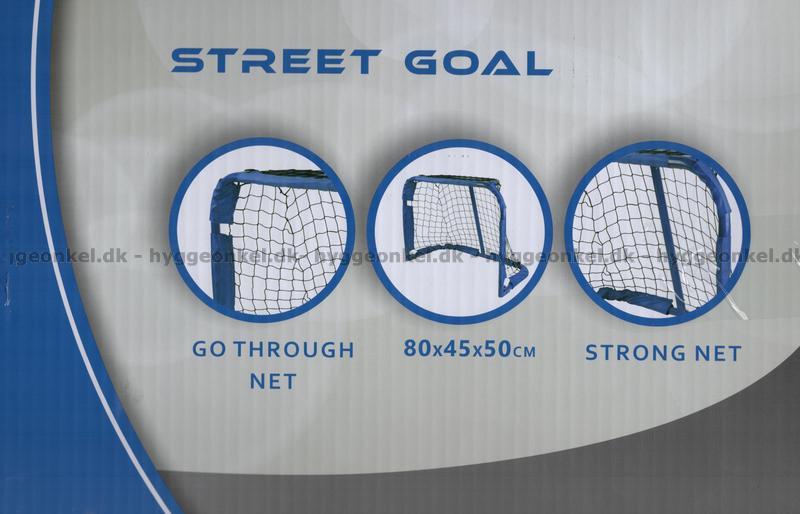 Här får du ett mål med en stabil stålram. Målet ska monteras innan användning. Måtten är 80 x 45 x 50 cm. Det har ett "go through"-nät. Materialen är i utmärkt kvalitet.