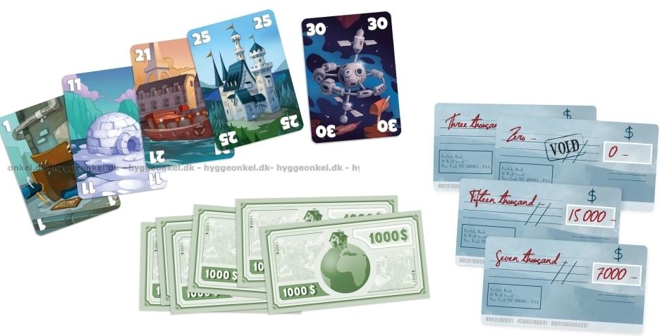 Det finns inget spelbräde eller något annat överflödigt. Det finns endast byggnadskort som kan vändas och som man budar på. När alla byggnadskort har fördelats ut gäller det att sälja dem igen - helst till ett så högt pris som möjligt.