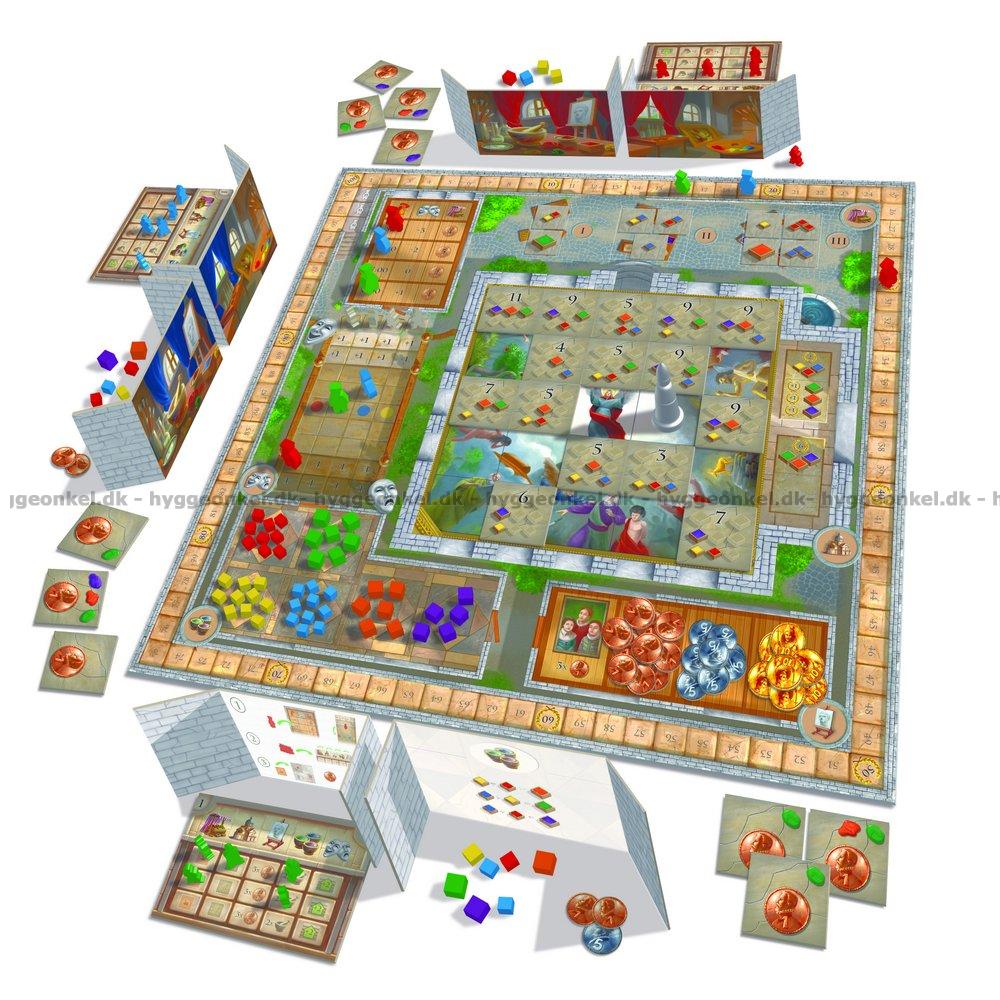 Nere i kartongen finner du en stor mängd brickor, kort och ett stort härligt spelbräde. Dessutom medföljer svenska spelregler.