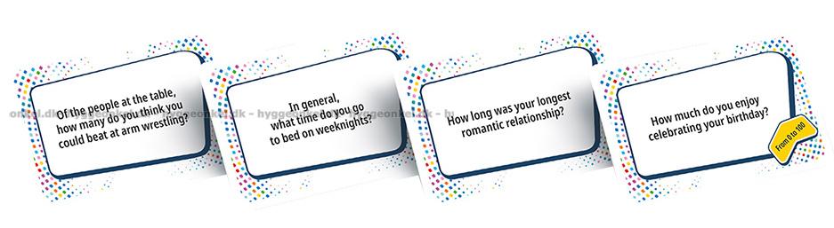 Ni börjar med att ta upp ett av frågekorten och lägga det mitt på bordet.