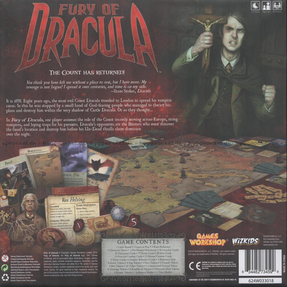 I Fury of Dracula ikläder sig en spelare rollen som Dracula medan upp till fyra andra är berömda vampyrjägare som försöker att stoppa honom.