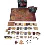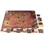 Spelbräde, kort, marker och miniatyrfigurer i plast.