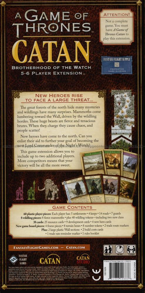 - Expansion till Game of Thrones Catan: Brotherhood of the Watch