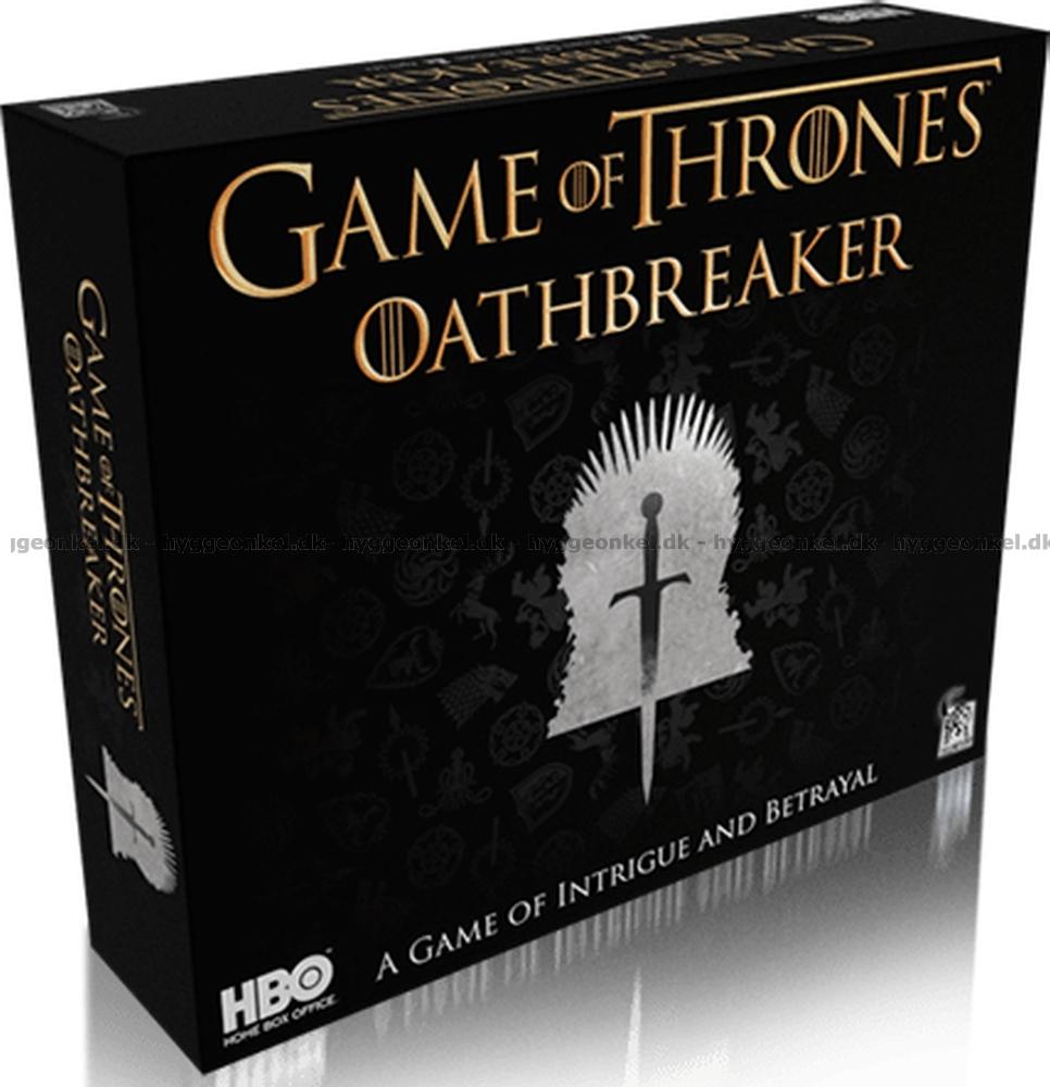Game of Thrones (HBO): Oathbreaker är ett spel fyllt med bluff och social deduktion för 5-8 spelare. En av spelarna ikläder sig rollen som kung (eller drottning) medan de övriga är överhuvuden för Westeros adelshus. Några är lojalister, som önskar lag och ordning i riket, medan andra är sammansvurna och önskar underminera kungamakten, och alla har de hemliga mål. Vem är verkligen lojal, och vem hungrar enbart efter makt, ära och rikedom? Det är upp till kungen att ta reda på det innan det är för sent.