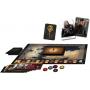 Spelbräde, karaktärskort, kort, marker och träkuber.