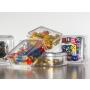 Här får du 3 askar i genomskinlig plast. Askarna kan staplas.
