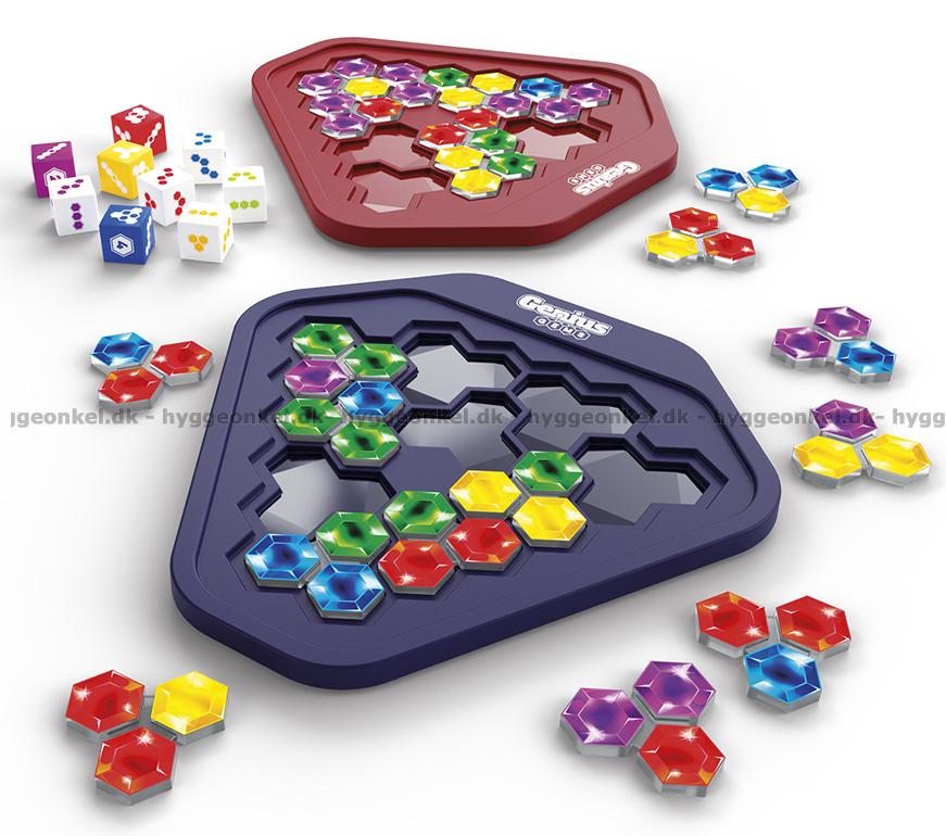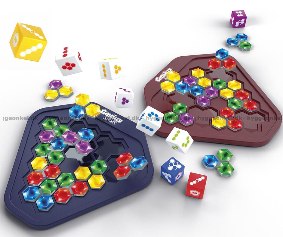 I Genius Gems gäller det att vara först med att fylla sitt område med de 10 färgade brickorna.