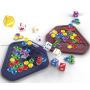 2 diamantformade spelområden, 2 uppsättningar med 10 brickor och 9 tärningar.