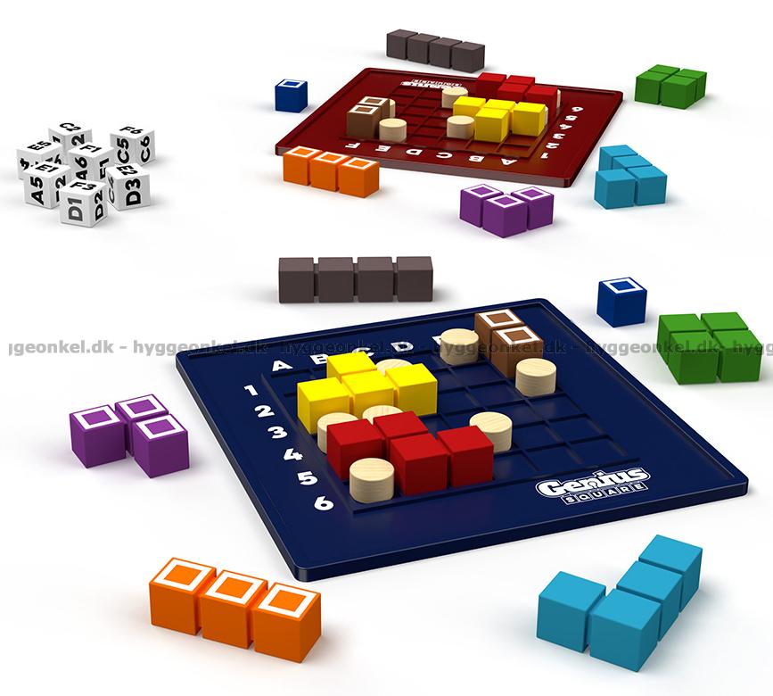 I Genius Square handlar det om att bli först med att fylla sitt spelområde med de 9 färgade brickorna.