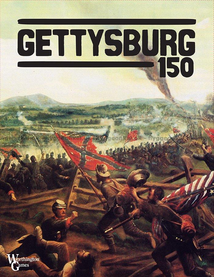 Gettysburg 150 is an expansion of the ideas contained in Hold the Line. Like Hold the Line, it uses command action points for units to move and attack. The CRT is simliar, although artillery is weaker at longer ranges due to the greater scale of the battle. However, the board is not modular and infantry units are stronger. Units are division level, with brigade level cavalry. Advanced features like column movement is covered simply with movement bonuses for not moving adjacent to enemy units. More importantly, the game has optional rules to increase realism, including early reinforcements, army demoralization due to heavy losses, and rules to encourage corps organization. The game has 4 scenarios covering days 1, 2, and 3, as well as the Confederate attack on Little Round Top on July 2. Scenarios are playable in 1 hour for the day battles, 20 to 30 minutes for the Little Round Top scenario. The complete 3 day battle is playable in 2.5 to 3 hours.