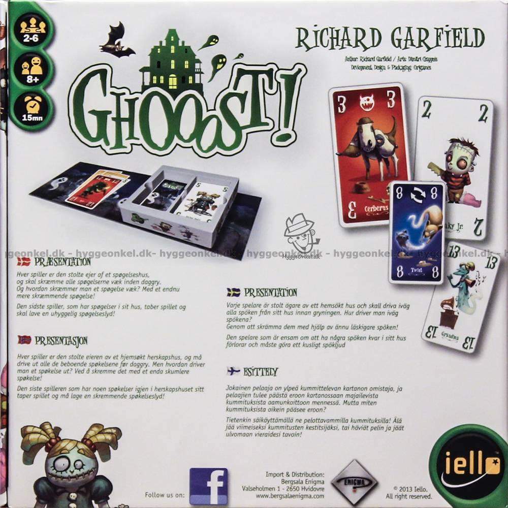 I Ghooost! är varje spelare ägare till ett vackert hus. Dessvärre är det bara vackert på utsidan. På insidan bor både spöken, vampyrer, zombier, med flera otäcka varelser. Varje otäcking representeras av kort.