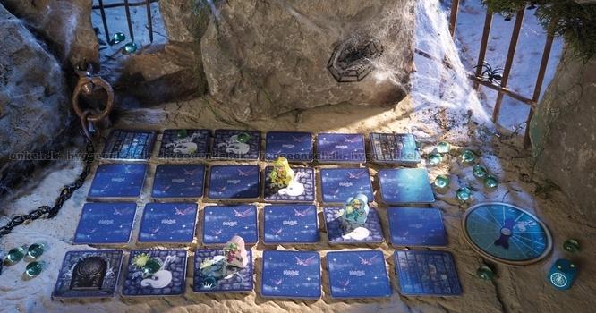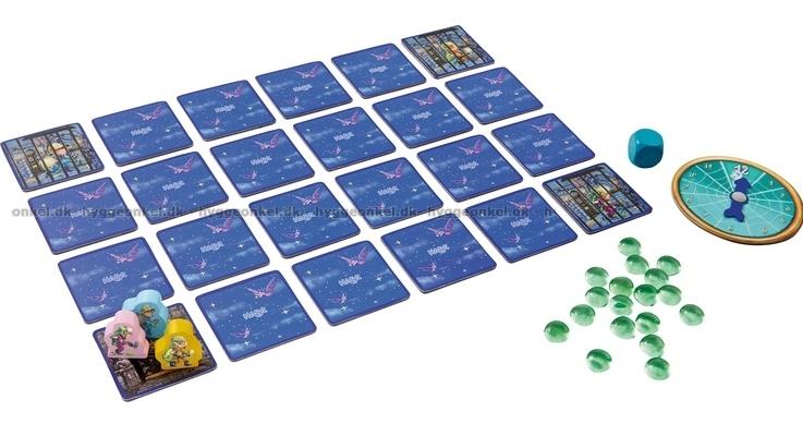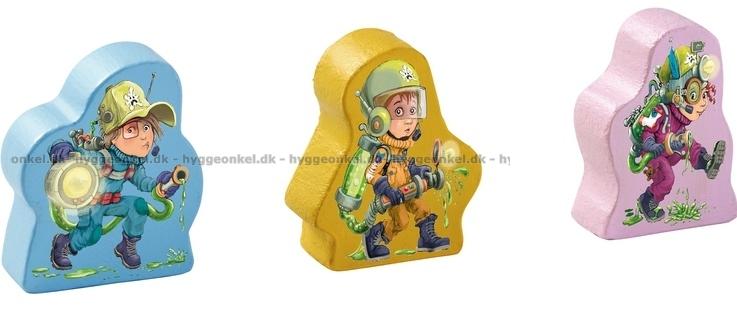 3 spökjägare, brickor, 1 tärning, marker och en tidmätare.
