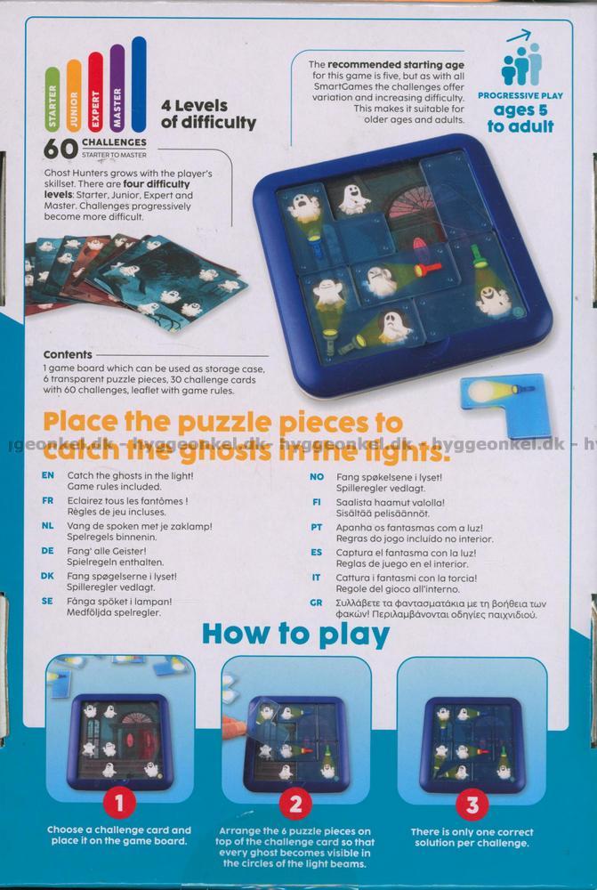 Man väljer en utmaning och placerar sedan ut brickorna enligt den. Därefter gäller det att placera brickorna med ficklampor så att alla spöken får ljus på sig.