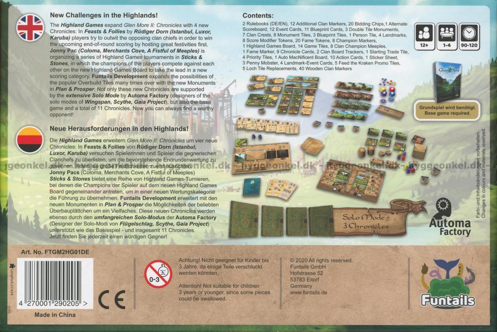 Glen More II: Highland Games innehåller tre nya Chronicles och en komplett solo mode-version.