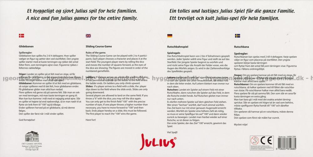 Rutschbana med Julius är stegspelet i en trevlig julversion. Landar man på ett stegfält får man klättra upp på stegen. Landar man på ett rutschbanefält får man åka ner för banan.