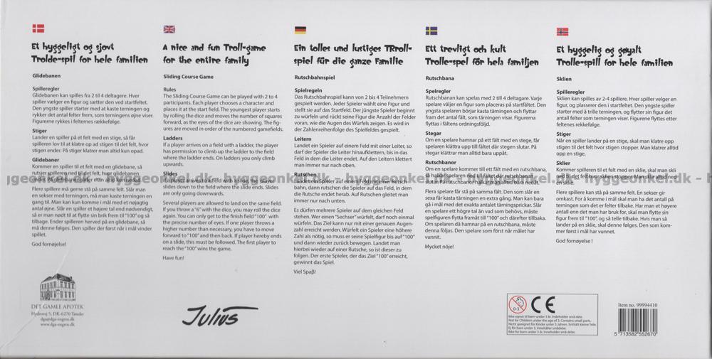Rutschbana med trolle är stegspelet i en trevlig version. Landar man på ett stegfält får man klättra upp på stegen. Landar man på ett rutschbanefält får man åka ner för banan.