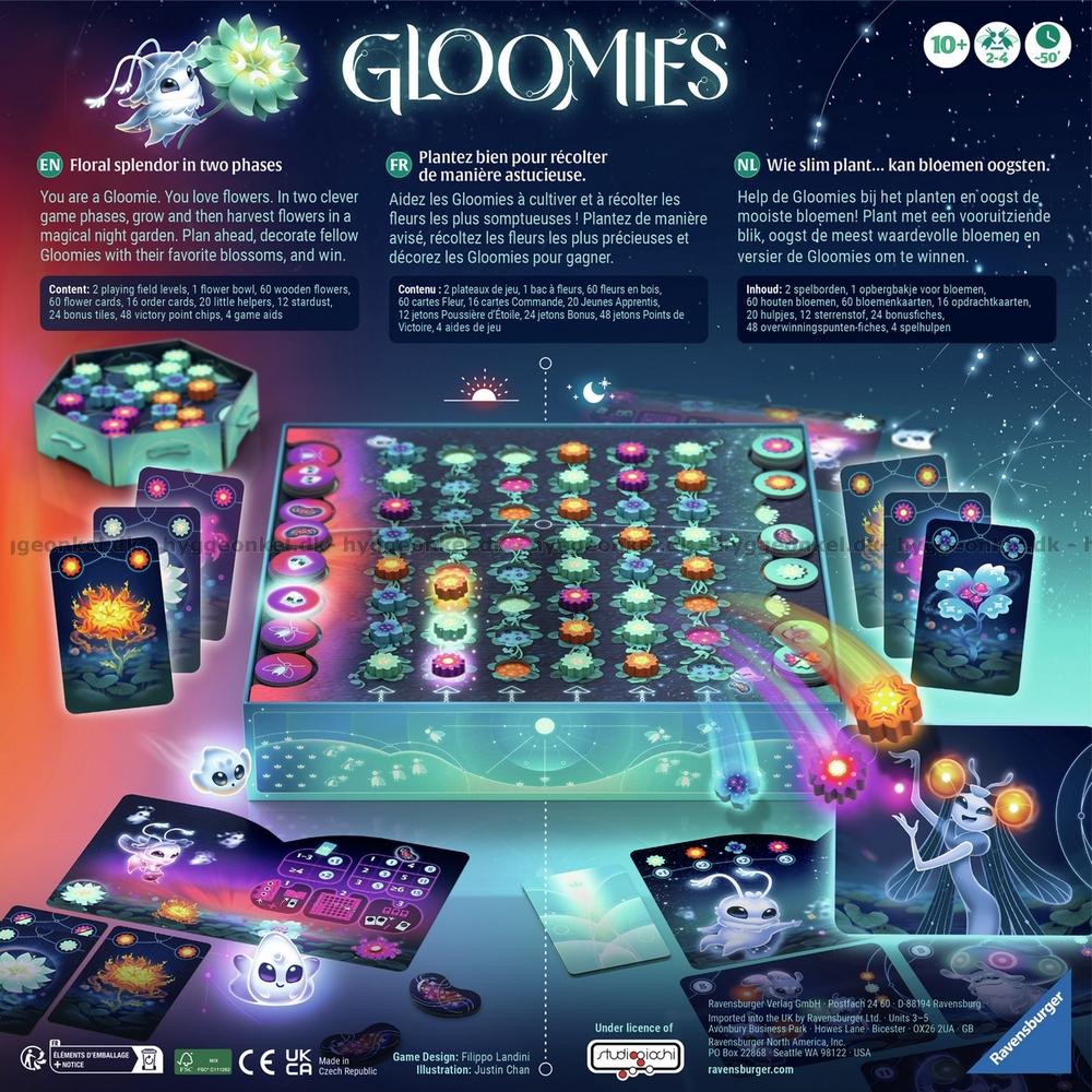 I Gloomies blir ni till trädgårds-Gloomies som ska plantera och skörda blommor för att samla flest poäng och vinna spelet.