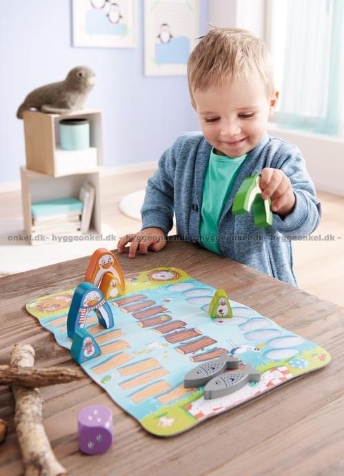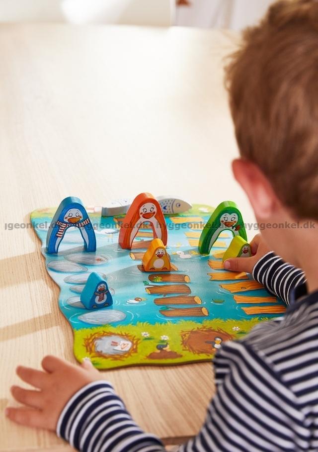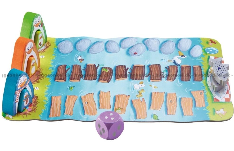 Pingvinerna är hungriga, men pingvinungarna har inte ännu lärt sig att simma. Hjälp dem att komma över till den andra sidan floden genom att hoppa på de stenar och trädstammar som ligger i vattnet.
