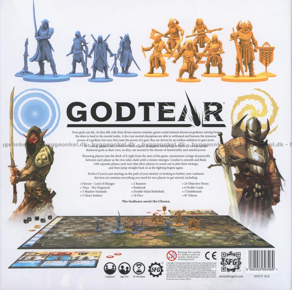 I detta starterset av Godtear får spelarna roller som hårdföra champions som alla strävar efter gudomliga krafter och makt över hela riket.