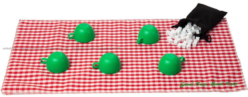Duka upp för det stora kaffebordet och gör dig redo för en nervkittlande tävling för hela familjen med Good Cup Bad Cup. Här kan ni spela antingen en mot en eller i lag mot varandra, och kampen gäller något så sött som sockerbitar. Medan motståndarna tittar bort gömmer du socker under kopparna, och när blickarna åter riktas mot bordet gäller det att välja rätt. Väljer du fel riskerar du att ge bort sockret till de andra, och därmed kan balansen i spelet tippa över. Det är ett spel som håller alla på tårna, där timing och magkänsla kan vara avgörande, och där dramat alltid serveras tillsammans med kaffet.