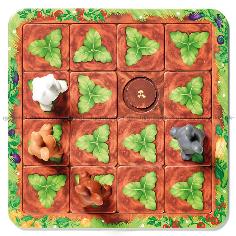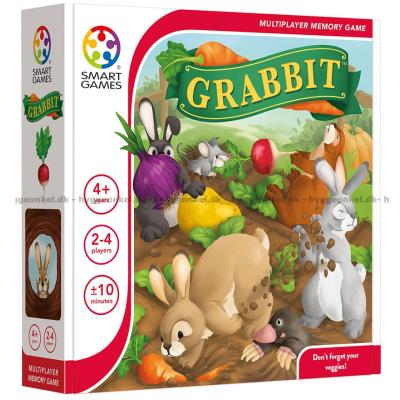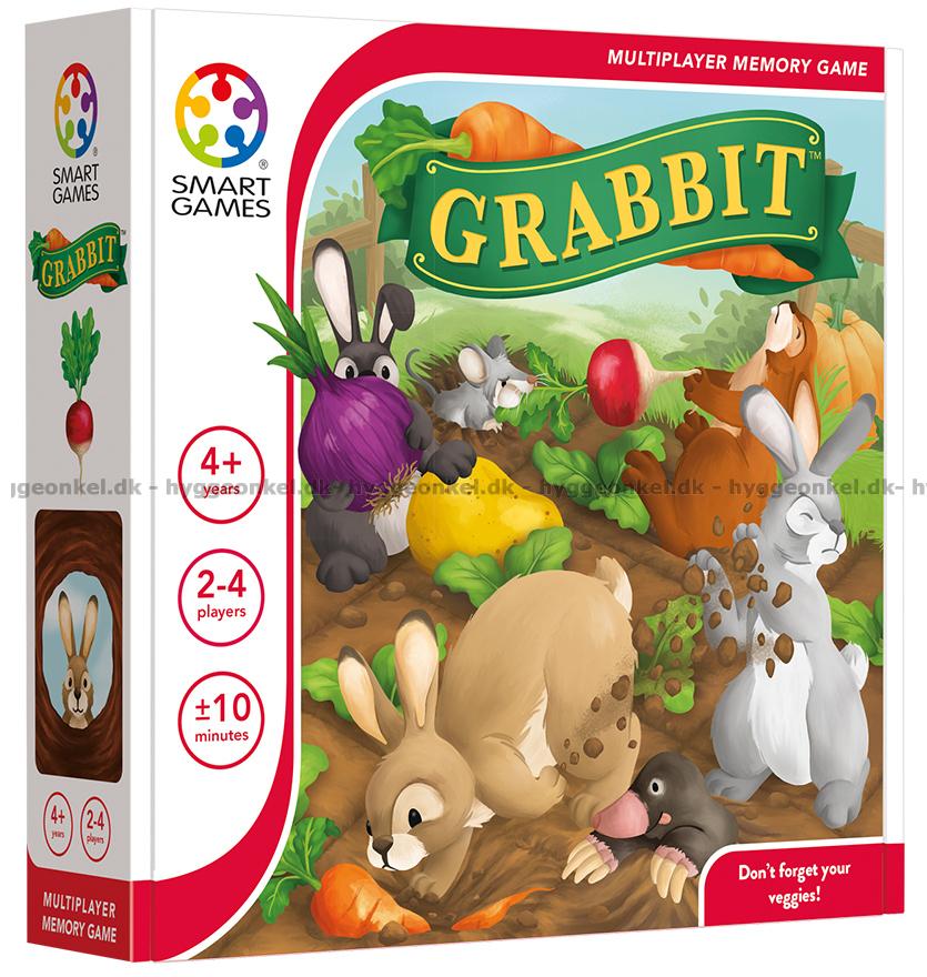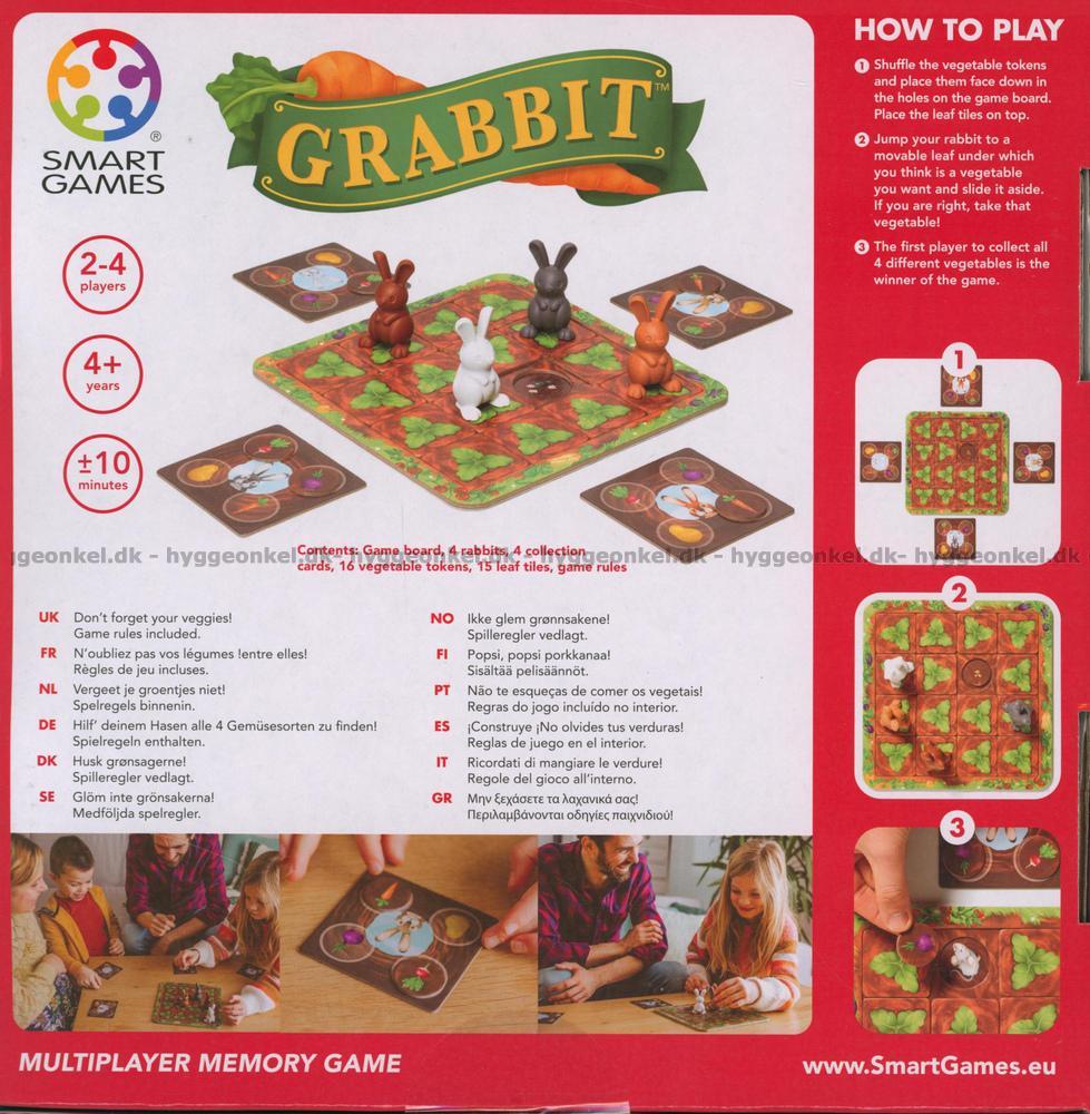 Memory-spel finns i många varianter. I Grabbit finns en extra utmaning. Man ska inte bara komma ihåg var på brädet som grönsakerna finns. Man får också vara beredd på att grönsakerna skjuts runt.