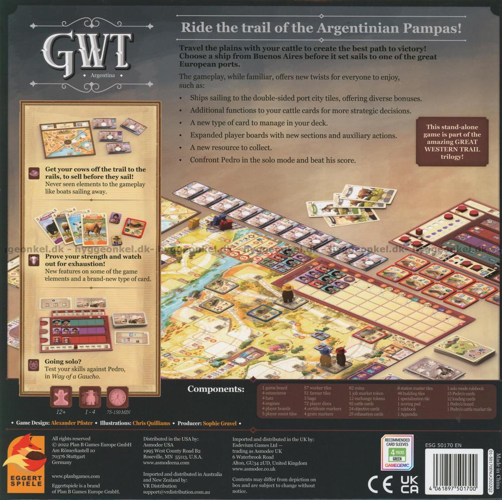 Great Western Trail: Argentina är ett fristående spel i serien med samma namn. I denna utgåva utspelar sig spelet i Argentina. Som spelare är man ägare av en stor estancia, som är en stor boskapsfarm.