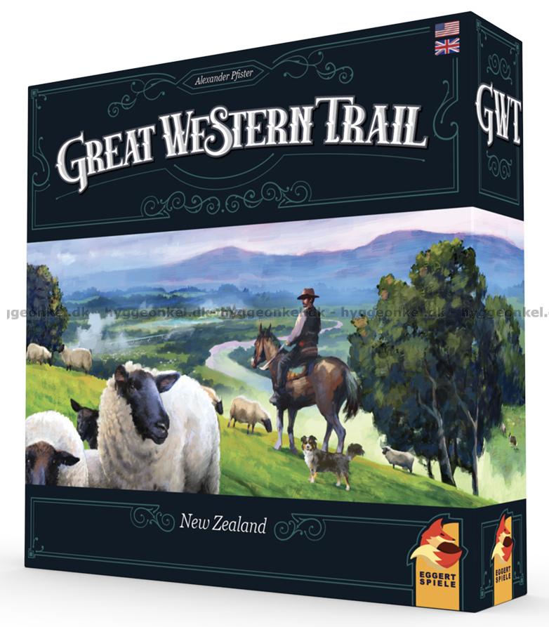 Great Western Trail: New Zealand är det tredje och för närvarande sista brädspelet i Western Trail-serien. Det finns ett nytt landskap som ska utforskas och nya strategier som ska testas.