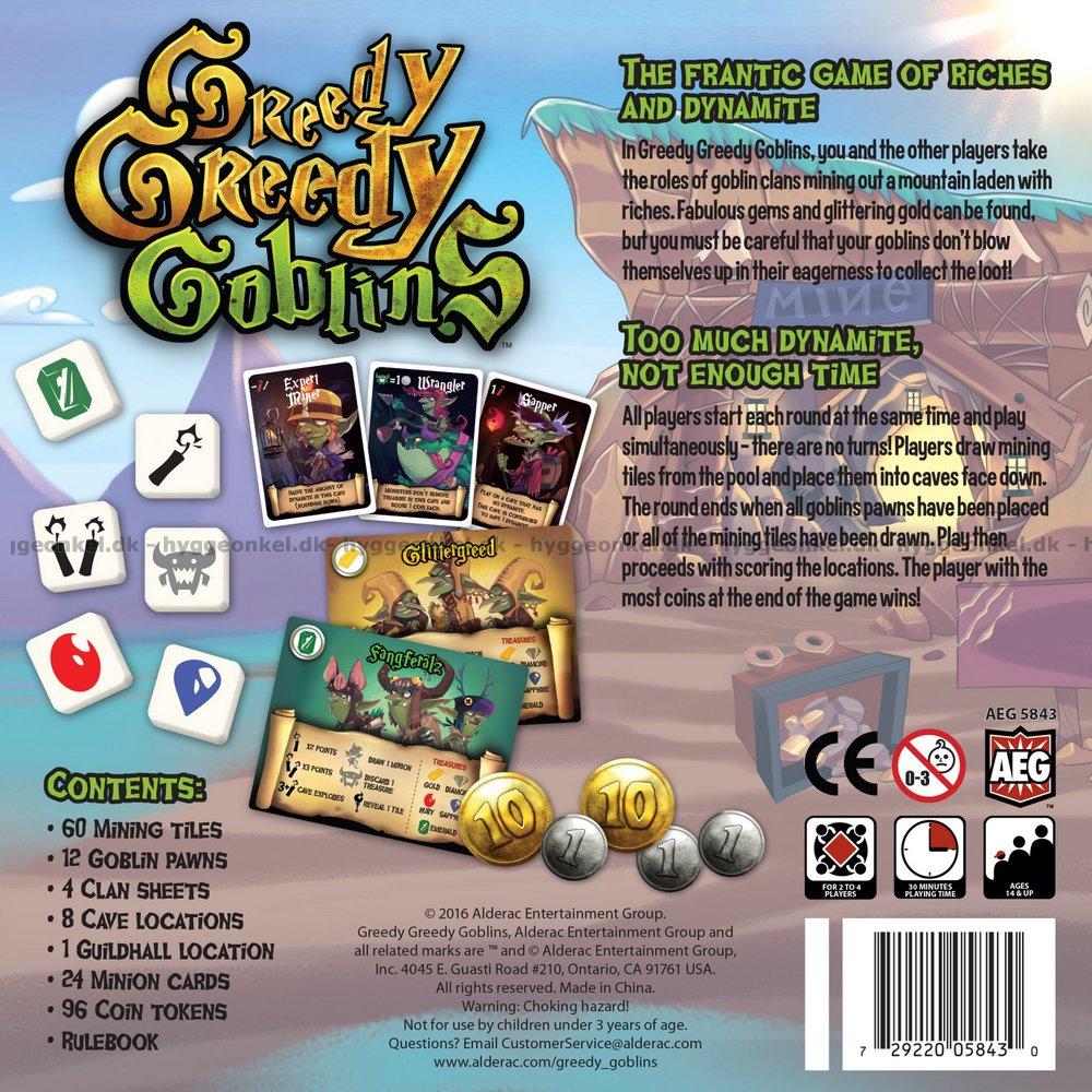 Players lead a clan of goblin miners who want to gather the most valuable collection of gems. Coins are scored for gem tiles on the mines you have claimed, with bonuses for dynamite tiles — but if there is too much dynamite, the mine (and all the riches within) are destroyed!