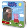 1 Greta Gris-figur som kan göra ljud (mäter cirka 11 x 5 cm) och 24 kort med bilder.