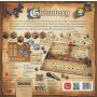 Spelområden, kort, pjäser i trä och marker i kartong.