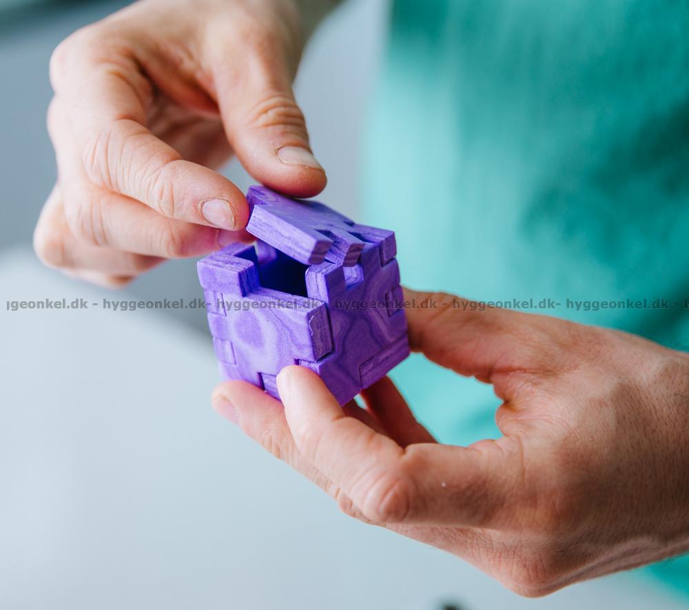 I detta logikspel/tänkarspel ska du bygga kuber av olika delar i skumplast.