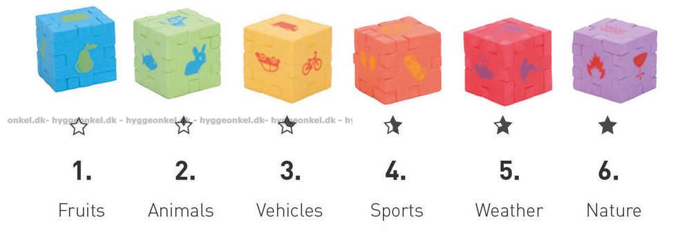 Det finns 6 olika kuber i 6 olika svårighetsgrader. Det här är den blå kuben.