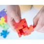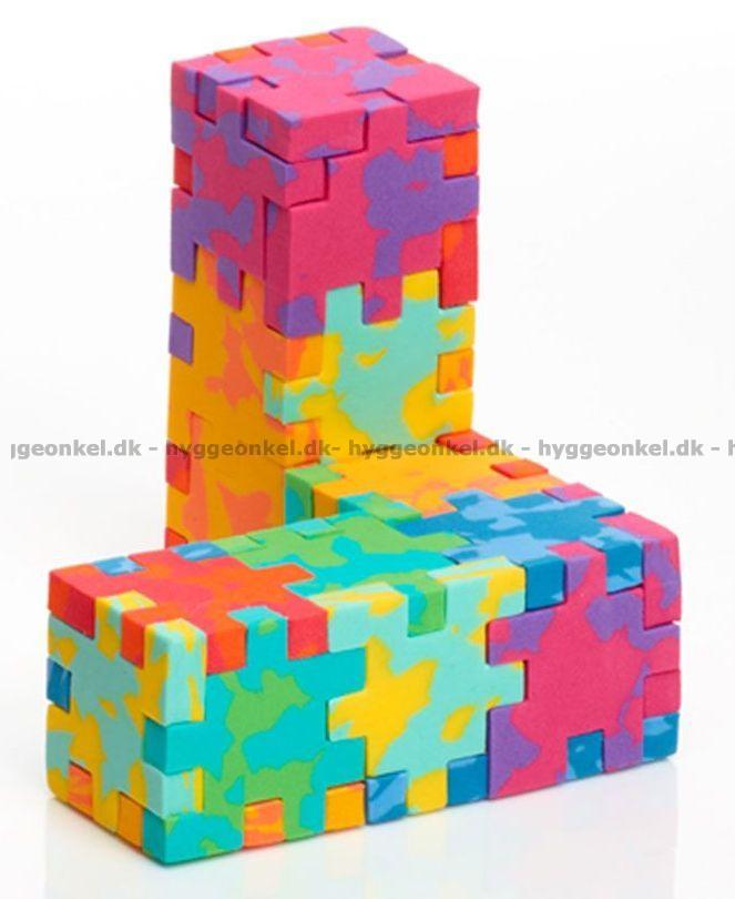 I detta logikspel/tänkarspel ska du bygga kuber av olika delar i skumplast.