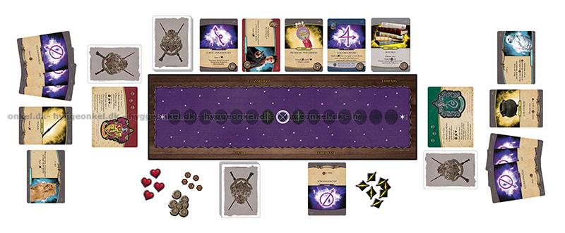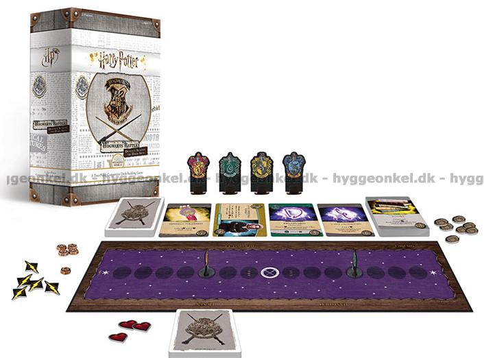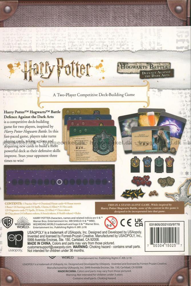 Harry Potter Hogwarts Battle: Defence Against the Dark Arts är ett deckbuilding-spel för två spelare inspirerat av Harry Potter Hogwarts Battle. I detta snabba spel turas spelarna om att spela kort, utföra handlingar och skaffa sig nya och bättre kort så att de blir mer mäktiga. Lamslå din motståndare tre gånger för att vinna!