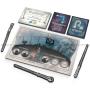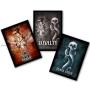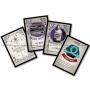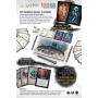 Spelbräde, kort, tärningar, markörer och trollstavar i papp.