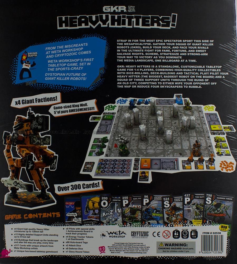 GKR: Heavy Hitters är ett fristående spel för 2-4 spelare. Det kombinerar läckra figurer med tärningar, mechs och taktiskt spel! Styr din Heavy Hitter (de största och mest brutala stridsrobotarna på brädet) och en grupp av tre stödtrupper genom ruinerna av en storstad medan du försöker driva bort dina motståndare eller krossa fyra skyskrapor.