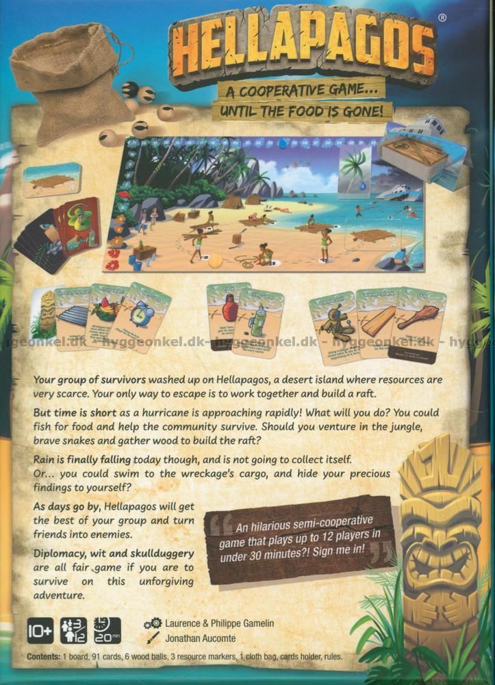 I Hellapagos är spelarna skeppsbrutna på en öde ö. Vid första anblick liknar ön ett paradis, men det dröjer inte länge förrän det visar sig vara svårt att överleva på den.