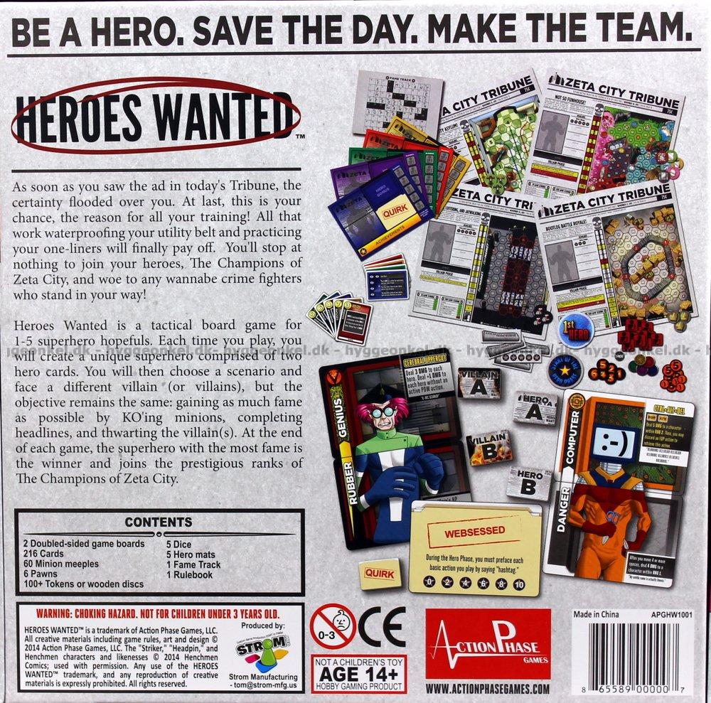 Heroes Wanted is a tactical board game for 1-5 superhero hopefuls, attempting to fulfill their dreams of becoming a member of Zeta City’s exclusive crime fighting super team: The Champions of Zeta City. Each time you play, you will create a unique superhero comprised of two hero cards. You will then choose a scenario and face a different villain (or villains), but the objective remains the same: gain as much fame as possible by KO’ing minions, completing headlines, and thwarting the villain. At the end of each game, the superhero with the most fame is the winner and joins the prestigious ranks of The Champions of Zeta City.
