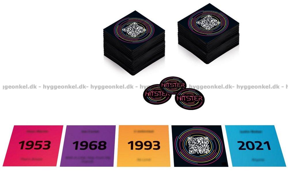 Öppna lådan, skanna ett låtkort med HITSTER-appen och låt musiken starta automatiskt på Spotify (som är gratis). Gissa om en låt släpptes före eller efter andra låtar på din tidslinje. Ju längre du kommer, desto svårare blir det. För extra spänning kan HITSTER-tokens läggas till i spelet.