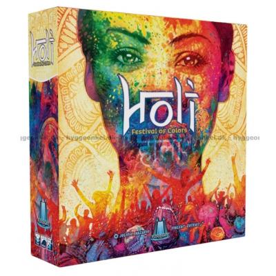 I Holi sätts spelbrädet ihop till ett 3D-torn med flera nivåer. Kasta det färgade pulvret på de andra festivaldeltagarna - i spelet görs det med hjälp av färgkort. Använd dina färgkort klokt och fundera kring när det är rätt tidpunkt att gå upp en nivå på spelbrädet.