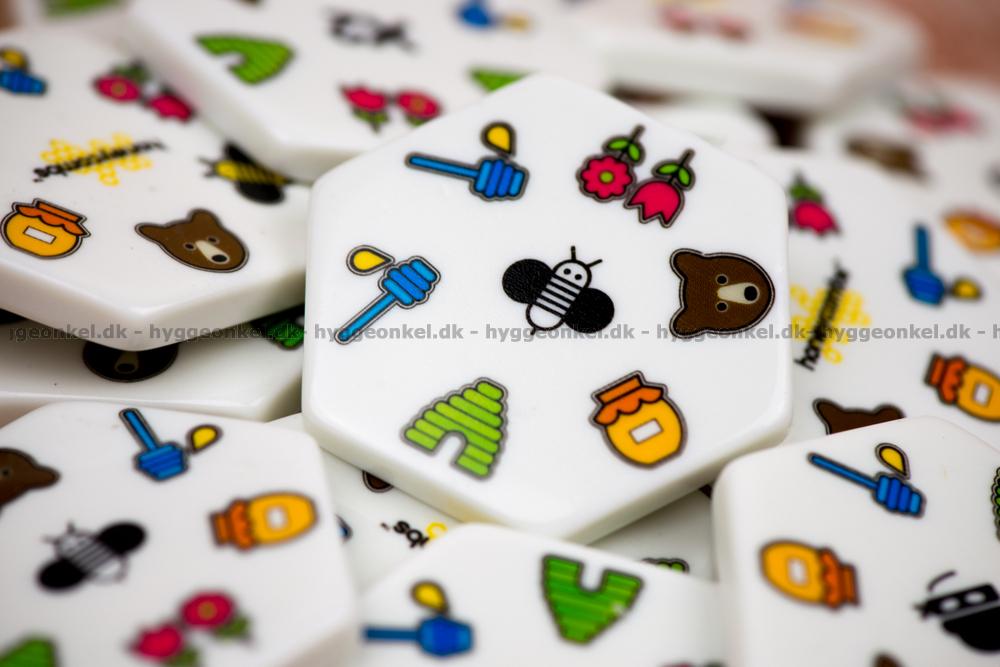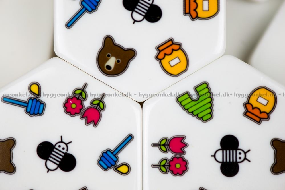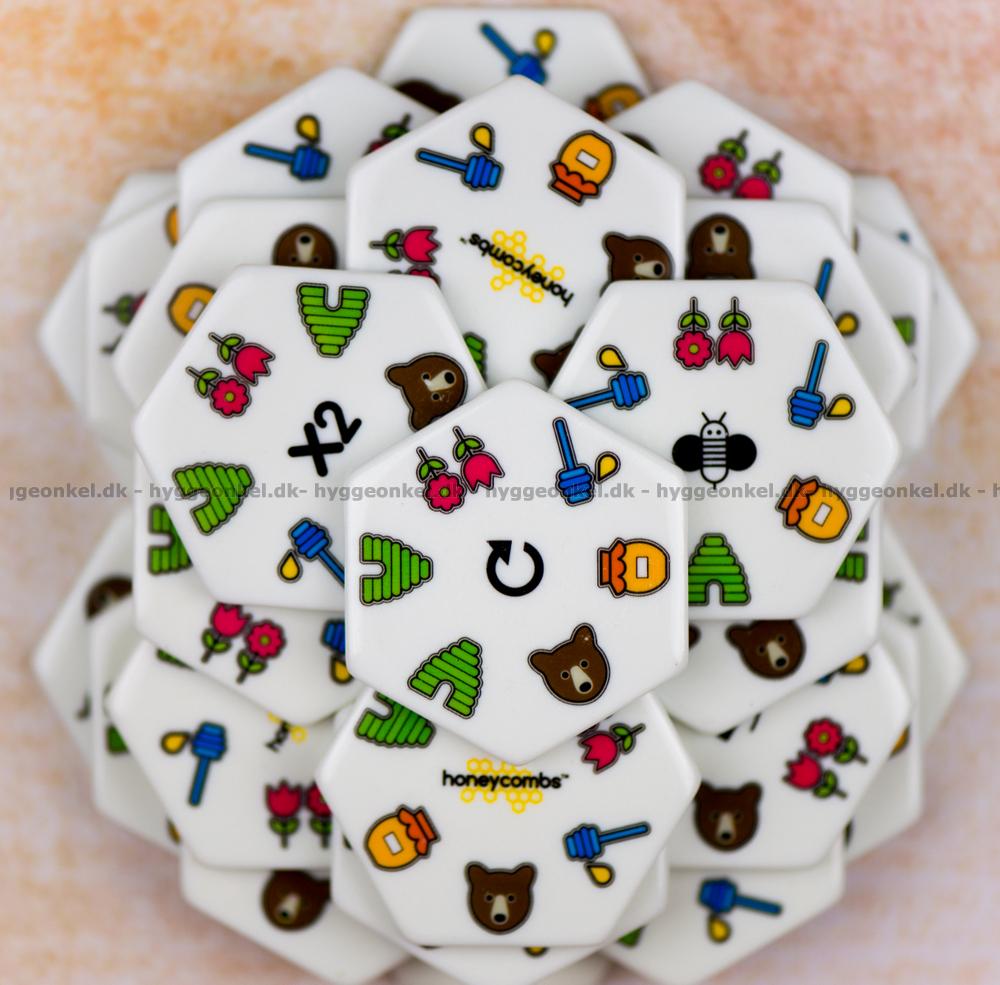 Var och en av de 52 brickorna i Honeycombs har 6 symboler längs kanterna. Inga av de 52 brickorna ser likadana ut. Symbolerna kan exempelvis vara en bikupa, blommor, en honungsburk, en björn eller en honungssked. Det kan också handla om ett honungsbi, som fungerar som en slags joker som kan ersätta och matchas med alla andra symboler.