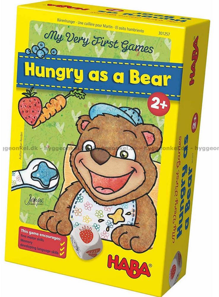Den lilla björnen är verkligen hungrig. Lyckligtvis är middagen redan lagad.