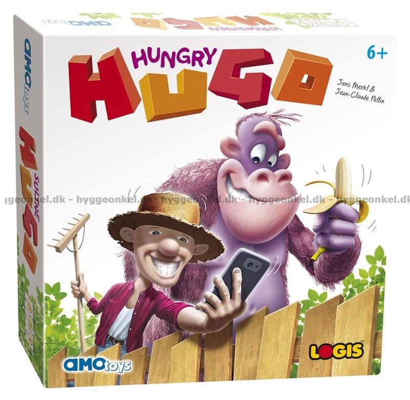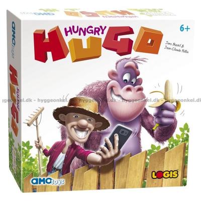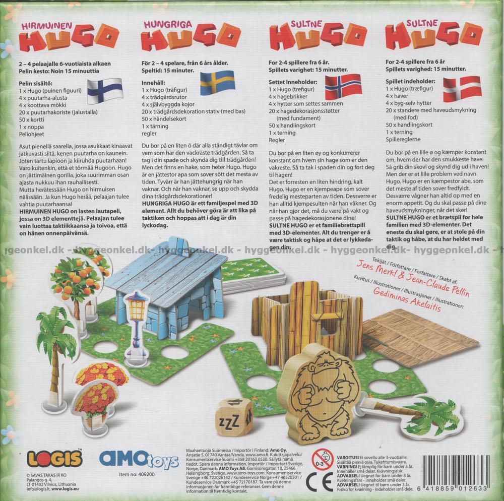 Hugo träfigur, kort, tärning och figurer i kartong.