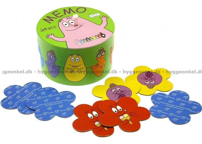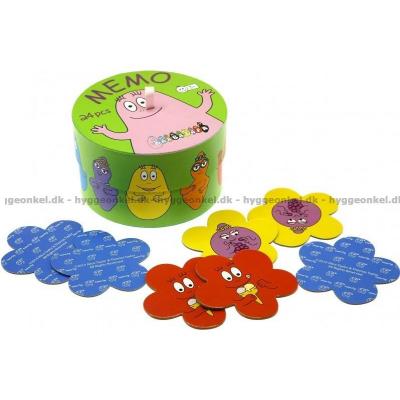 Memory: Barbapapa kommer i en liten söt ask, som också kan användas för att gömma saker i eller för lek. Asken mäter 11,5 cm i diameter och är 7,5 cm hög. Den är i kraftig kartong. I asken hittar du: