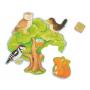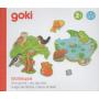 Asken innehåller 2 pussel med vardera 4 djur och 1 tärning. De minsta brickorna mäter ungefär 6 x 6 x 0,5 cm.